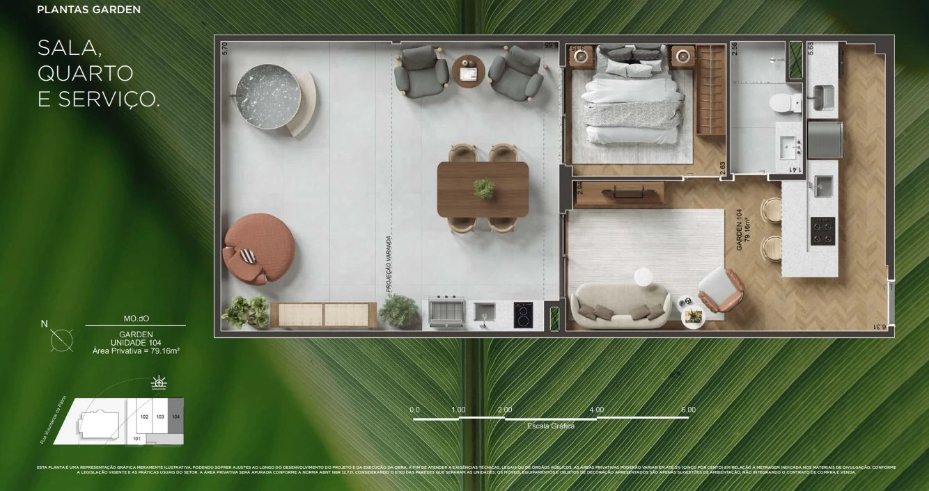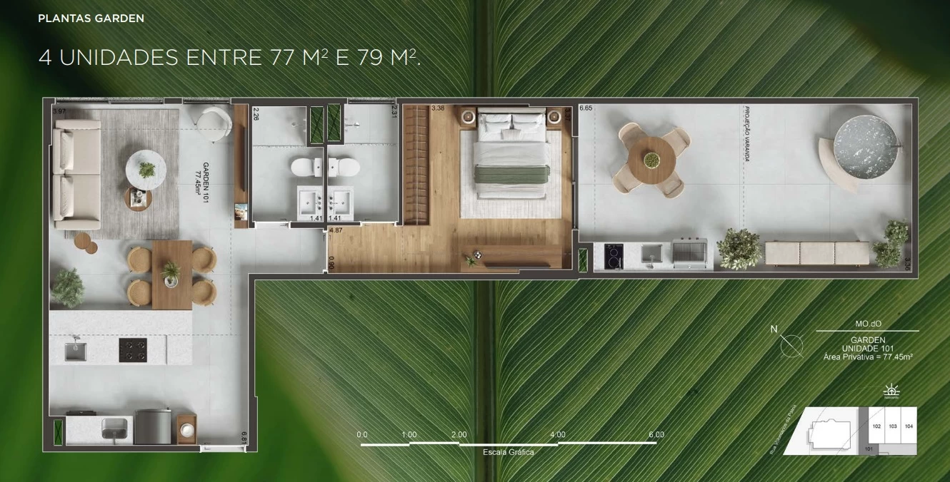Garden Sala e quarto com 77m² e 79m².